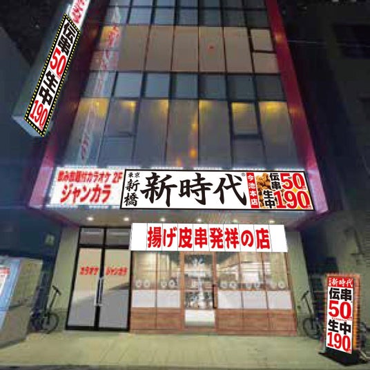 「新時代」は、累計販売本数2億本を超える『伝串』を名物とする、揚げ皮串発祥のお店です。