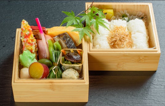 「古都の玉手箱」は和食のお弁当、京野菜をふんだんに使った和食のお弁当です。お部屋または、最上階のテラスで朝ごはんをお愉しみいただけます。