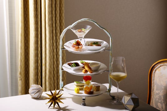 3段のティースタンドには、冷菜から温菜、デザートと、ディナーとしてもお楽しみいただける内容でご提供いたします。お食事は奈良県桜井市の三輪素麺をパスタに見立てた「オマール海老と三輪素麺のパスタ風」や、爽やかな酸味と奈良漬の食感が癖になるタルタルソースを使用した「舌平目のスティックフライ 奈良漬け入りのタルタルソース」など奈良の要素も取り入れ、暑い夏でもさっぱりとお召し上がりいただけるシェフ特製のメニューをご用意。スイーツは、「オレンジタルト」や「ヨーグルトメロンヴェリーヌ」など、まさに暑い夏に食べたいパティシエ厳選スイーツ5品をご提供いたします。
