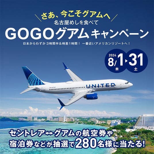 グアム政府観光局日本オフィスは、中部国際空港、ユナイテッド航空、プレミアホテルグループ、名古屋の地元企業(若鯱屋、まるや本店、宮きしめん)と共同で「名古屋めしを食べてグアムに行こう!GOGO グアムキャンペーン」を開始いたします。このキャンペーンでは、名古屋市内の特定の名古屋めし飲食店にてお食事をされた方々に、グアム旅行に行っていただく機会をご提供したいと願い企画いたしました。中部国際空港セントレアからは、毎日グアムに直行便が飛んでおり、ぜひこの機会を通じてグアムへ渡航していただく方が増えることを期待いたします。