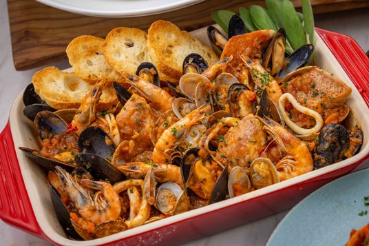 魚介たっぷりリヴォルノ風カチュッコ(イタリア海鮮トマト煮込み)
