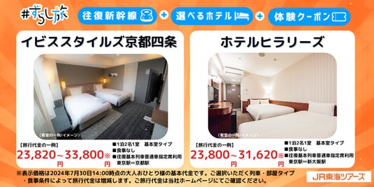 株式会社ジェイアール東海ツアーズ(本社:東京都中央区、以下JR東海ツアーズ)では、2024年7月30日(火)14時より、2024年10月以降出発分の「EXずらし旅」を発売開始いたします。新幹線とホテルを個別で予約するより、セットで予約するのがおトク。当社最安値の「EXずらし旅」は、もっとおトクです。混みあう秋の行楽シーズンは早めの予約がおすすめ。是非お見逃しなく!