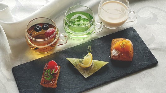 「中山製茶」がおすすめする滋賀県の土山茶を使用した3種のティーと当ホテルパティシエが用意するスイーツでペアリングを体験いただけます。