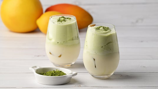 ・ ほうじ茶ラテ×フィナンシェマンゴー(写真右)