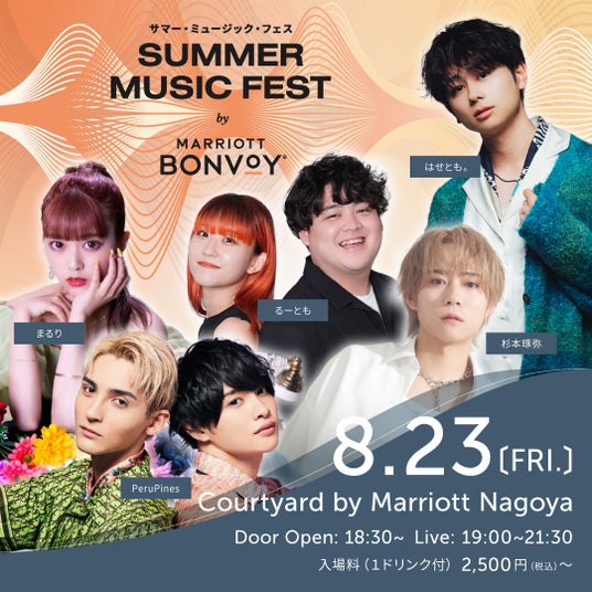 マリオット・インターナショナルのホテル「コートヤード・バイ・マリオット名古屋」(所在地:愛知県名古屋市、総支配人:Sebastiaan Kleinsman) は、2024年8月23日(金)にSummer Music Fest 2024(サマー・ミュージック・フェス 2024)を開催いたします。Tik TokやYouTubeで話題の才能あふれる個性豊かなアーティスト5組がヘッドライナーを務め、心に響く音楽と最高のパフォーマンスをお楽しみいただけます。