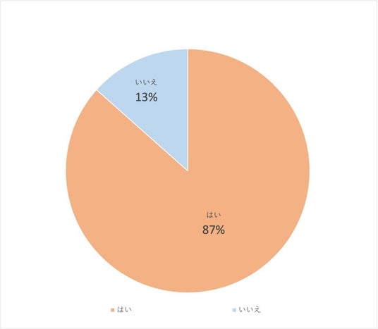同じく、Q1で「飲まない」以外の回答をした86%の方に、「Q3.味噌を自分で溶いたことがありますか?(n=1,840)」と質問をした結果、13%の方が「いいえ」と回答した。