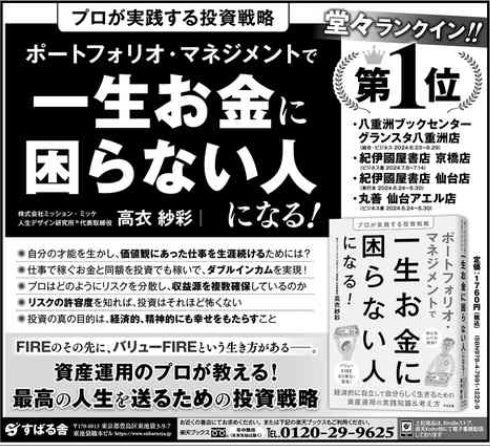 キャリア形成と資産形成を同時に進め、その実現に不可欠な精神性/人間力の向上に取り組む『人生デザイン構築学校(R)?』を運営する株式会社ミッション・ミッケ人生デザイン研究所(所在地?東京都港区)の代表取締役 高衣紗彩(たかごろも さあや)は、初の著書『ポートフォリオ・マネジメントで一生お金に困らない人になる!』を2024年4月15日(月)に出版。