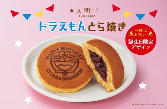 株式会社文明堂東京(代表取締役社長 宮崎進司)は、「ドラえもんどら焼き(誕生日限定デザイン)」を8月3日(土)から全国の文明堂東京・文明堂銀座店の直営店・オンラインショップ、および同社の商品を取り扱うスーパーマーケットなどで販売いたします。