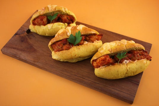 タンドリーチキンとオーロラソースをカレー風味の塩パンにサンドし、焼き上げました。表面にはとろけるチーズがトッピングされており、柔らかくジューシーなチキンと相性抜群です。