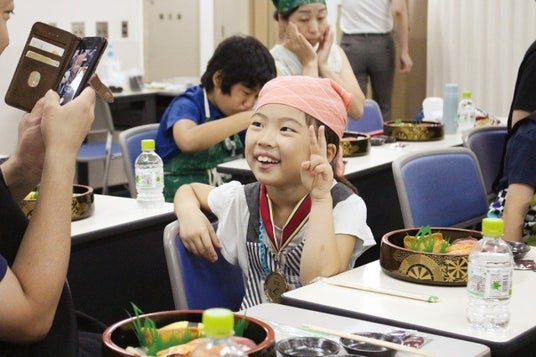 子どもたちに「知る喜び」「作る喜び」を伝えることを目的として、魚やお寿司についての勉強から始まり、自らネタ(魚)を切り、お寿司を握り、保護者の方と一緒に食べるまで全ての流れを体験するプログラムです。