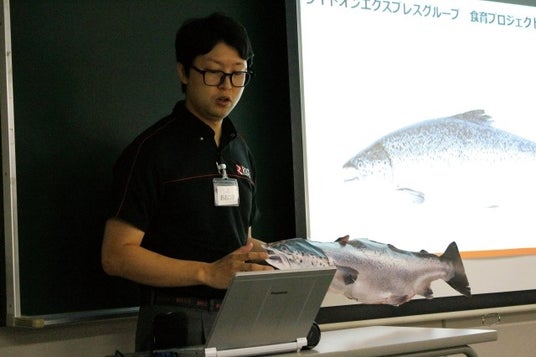 サーモンが稚魚の状態から出荷されるまでの流れに驚き、思わずワーッと声が上がる場面もありました。