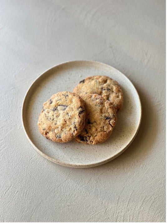 コーヒーのアロマを最大限に感じる新素材【カフェレート】を大きめに砕いてゴロゴロとくわえ、ヘーゼルナッツとあわせました。 表面にも荒めのグラニュー糖をまぶし、食べ応え十分なクッキーに仕上がりました。