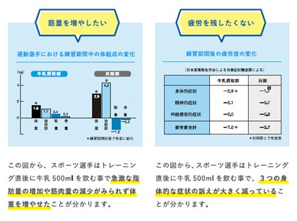 ※この分析結果は、スポーツ選手が毎日牛乳500mlを飲んで、さらにトレーニング直後にも500mlの牛乳を飲んだ場合の分析結果です。