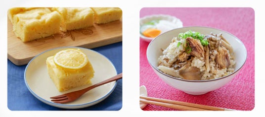 はちみつレモン蒸しパン(左)鯖と舞茸のミルク炊き込みご飯(右)