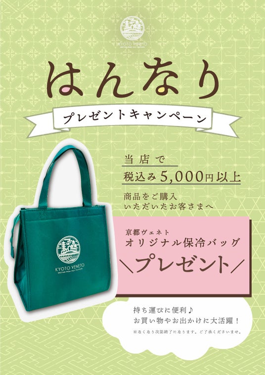 当店で税込5,000円以上お買い上げのお客様に京都ヴェネトオリジナル保冷バッグをプレゼント!!