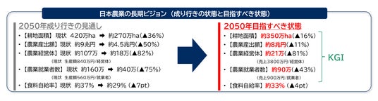 図表 日本農業の長期ビジョン(成り行きの状態と目指すべき状態)