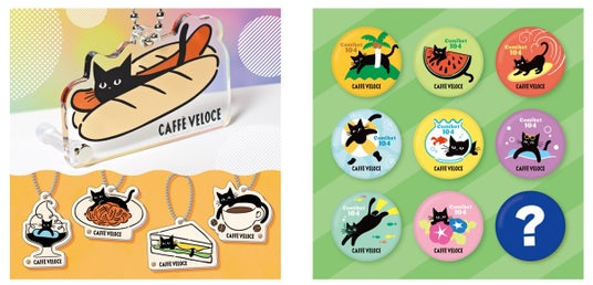 さらに、アクスタキーホルダーは5種類をご用意。コーヒーゼリーの海にぷかぷか浮かぶ黒ねこや、サンドイッチの布団に挟まる黒ねこなど、『カフェ・ベローチェ』の定番メニューとお茶目な黒ねこがコラボしたデザインです。缶バッチとアクスタキーホルダーは、カプセルトイにて入手いただけます。