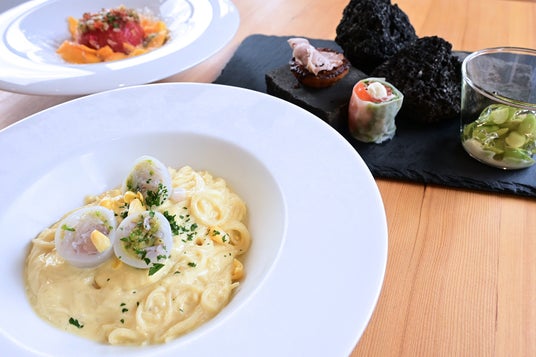 BLANC FUJIのレストランでは、富士山の麓を一周するようなストーリーをお料理を通じてお客様にお届けすることをコンセプトに季節のメニューを考案し、一皿ごとに特別なアクセントを与えています。どの料理にも地元の旬の食材を使用し、季節の変化を五感で楽しんでいただける工夫が施されています。