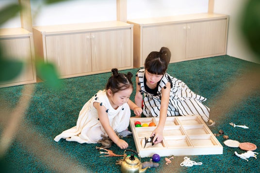 子どもがアトリエの中で見つけた興味をじっくり深めていく時間を大切にしてほしいと思い、お気に入りのもので作る大きな標本箱を設置します。アトリエには、珍しい形の木の実や、工業部品、いろんな色のチャック、生き物のフィギュアなどたくさんの素材があります。その中から見た目、形、感触など、自分のお気に入りを選んで入れると、自分の好きがつまった標本箱が完成します。たくさんある素材の中から、どうして気になったのか、なぜそれを選んだのか、子どもが選んだものへの気持ちや物語を聞くことで、子どもたちの考えやアイデアの豊かさに触れ、大人も一緒にその時間を楽しむことができます。