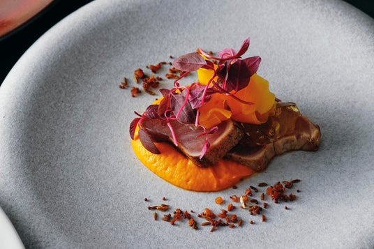 様々な部位やエキスなどすべてのメニューに上質な都城和牛を使用し、和牛のおいしさを余すことなくシェフの技巧で最大限に引き出したディナーコース。レストランシェフ・鈴木 勇一がお届けする、実りの秋を独創的に表現した品々をご堪能ください。