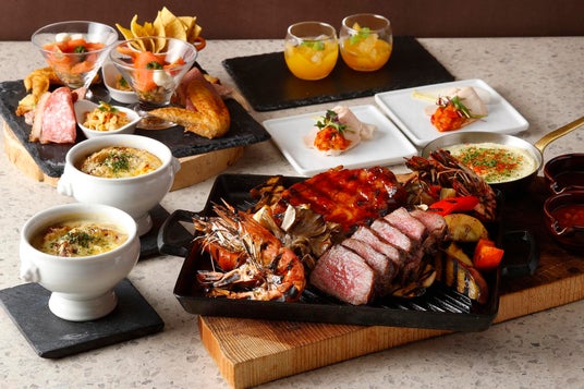 Lounge & Dining Gの定番メニューにもなっている、シェアスタイルでお楽しみいただくカジュアルなディナーコース。選べるアペタイザーやスープのほか、メインディッシュには幻の和牛との呼び声高い東京育ちの“東京ビーフ”など、シェフ厳選の3種の食材を豪快にグリルしたコンボプレートをお届けします。語らいのひとときが華やぐ、身も心も満足感たっぷりのディナータイムをどうぞ。