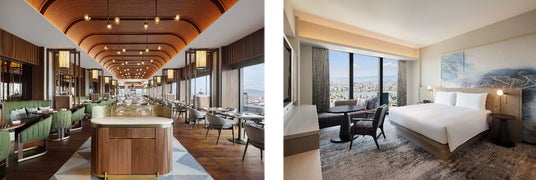 38階「SPECIALTY」と、各階のスイートルームにご宿泊のゲストがご利用いただける「SPECIALTY SALON」は、「雲上」がコンセプトとなっており、地上約170mからの素晴らしい眺望をお楽しみいただけます。チェックイン、チェックアウトのご案内のほか、朝食、スナック、アフタヌーンティー、イブニングカクテル、ナイトキャップを提供します。