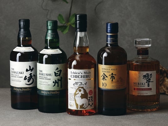 ▲画像左から/山崎Story of the Distillery2024/白州Story of the Distillery2024/イチローズモルト HBA2024余市10年/響 Blossom Harmony2024