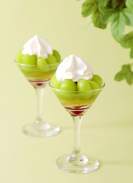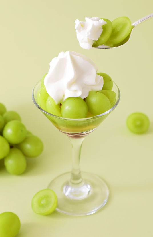 ・シャインマスカットのミニパフェ ヨーグルトエスプーマをのせて