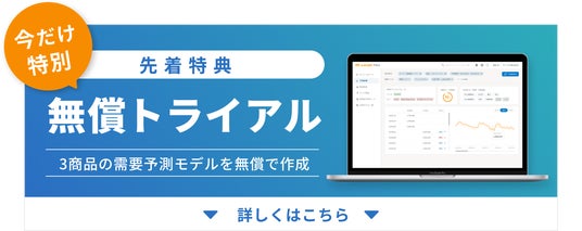 先着特典として、8月31日までにお問い合わせいただいた企業様には特別に「3商品の需要予測モデルを無償で作成」いたします。