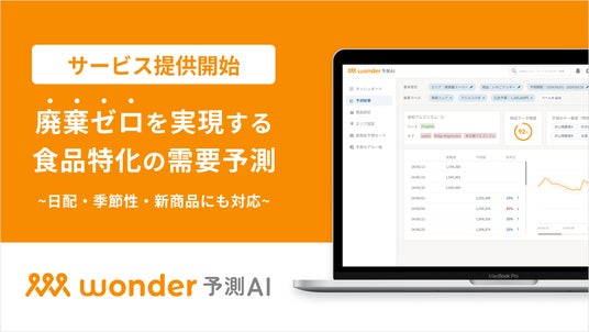 「食品廃棄ゼロ」を目指す株式会社WonderPalette(本社:東京都中央区、代表取締役:尾上寿明)は、食品業界に特化したAI需要予測SaaS『Wonder予測AI』の提供を開始いたしました。本サービスは、これまで担当者が属人的に行っていた需要予測をAIで代替し、工数削減と精度向上による廃棄率の低下、および利益率の向上を実現します。