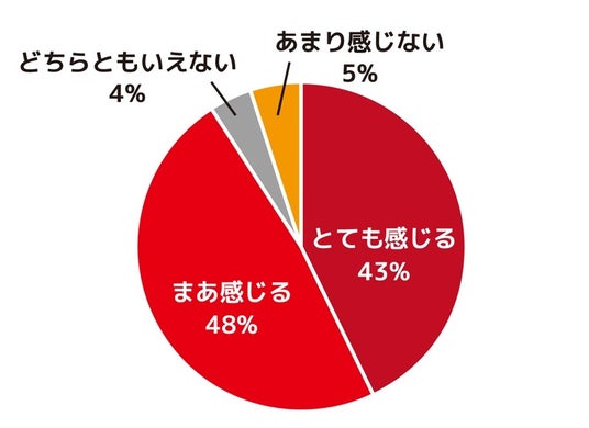 「おいしいオートミール 新ごはん」を初めて食べた方を対象に実施した調査で、「どの程度ごはん感を感じるか」という設問に対し、100名中91名の方に「とても感じる」「まあ感じる」と回答いただきました。