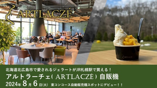 JR北海道フレッシュキヨスク株式会社(本社:札幌市中央区、代表取締役社長:小山俊幸)では、北広島市で人気のジェラート&ピッツァのお店「ARTLACZE Gelato & Pizza」を運営するアイビック食品株式会社(本社:札幌市東区、代表取締役社長:牧野克彦)及び北海道コカ・コーラボトリング株式会社(本社:札幌市清田区、代表取締役社長:酒寄正太)と連携し、素材にこだわったジェラートを手軽に購入できる自動販売機を2024年8月6日(火)よりJR札幌駅東コンコース自動販売機スポットに設置します。