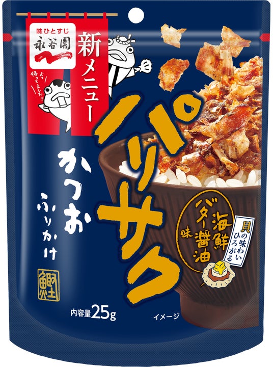 株式会社 永谷園(社長:成田 健一、東京都港区)は、花かつおの“素材感”とパリパリ・サクサクの“食感”(以下、パリサク食感)、そして食べ盛りの中高生にぴったりの“濃い味”が楽しめる、と熱い人気を博したシリーズから、第2弾「パリサクかつおふりかけ 海鮮バター醤油味」(税抜260円)を2024年8月26日(月)より全国で発売いたします。ごはんと相性抜群で貝の旨さが効いた「海鮮バター醤油味」で、食べ盛りの「まだまだごはんでお腹を満たしたい!」中高生のキモチに応え、ふりかけ市場の更なる活性化を図ってまいります。