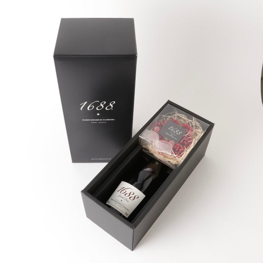 通常の1688とParis'16の750mlの化粧箱は、黒と白が基調。200mlのペアセットは4種類のレパートリーがあります。 その他、2024年新登場のトリコロールBox(写真下)はフランス国旗の青と赤が配色されています。