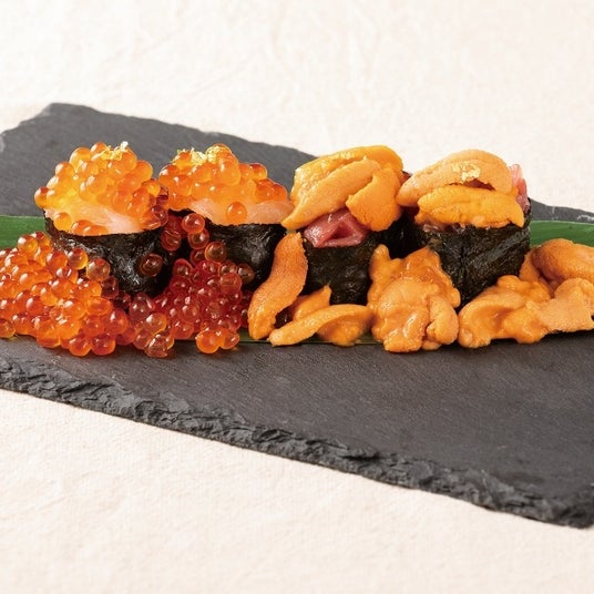白身、生本まぐろの軍艦巻きにウニ、イクラが盛り切れない程に沢山!