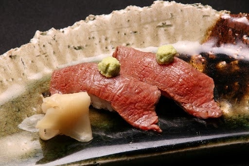 プラン特典の黒毛和牛炙り寿司