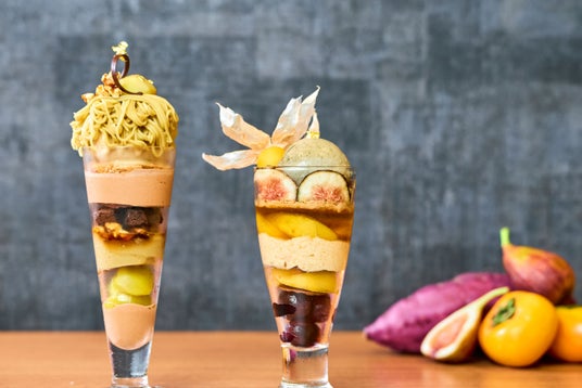 みずみずしい果実と棒茶の香ばしさが楽しめる「秋果と加賀棒茶のパフェ」