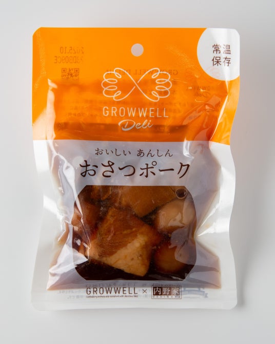 「グローウェルデリ」は自社ブランド豚「日向おさつポーク」を使用した素材と調味料にこだわった本格的なお惣菜です。常温で保存可能で、賞味期限は製造から1年7カ月です。