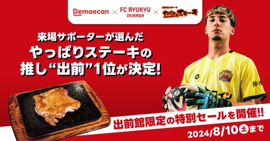 出前館(運営:株式会社出前館)、FC琉球(琉球フットボールクラブ株式会社)、やっぱりステーキ(運営:株式会社ディーズプランニング)は、2024年7月21日(日)のFC琉球ホームゲームにおいて、初となるコラボ企画「来場サポーターが選ぶ!推し“出前”決定戦 ~やっぱりステーキ編~」を実施いたしました。