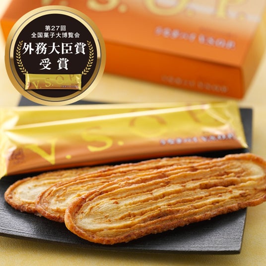 通称“真夜中のお菓子”うなぎパイV.S.O.P.は高級ブランデー「V.S.O.P.」の芳潤な香りと、ナッツの王様マカダミアナッツの香ばしさが一度に味わえる。浜名湖名産うなぎパイの頂点を極めた最高級パイです。