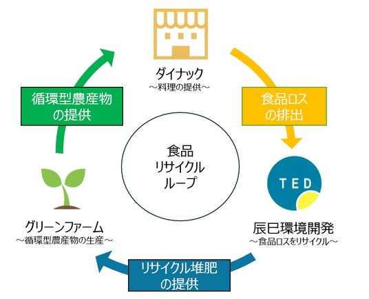 全国で飲食店の運営やケータリングサービスなどを展開する株式会社ダイナック(本社:東京都港区、代表取締役社長:綾野喜之、以下 当社)は、廃棄物処分業などを手掛ける辰巳環境開発株式会社(本社:大阪府守口市、代表取締役:辰巳秀司)と砂栽培農業を推進する株式会社グリーンファーム(本社:大阪府四條畷市、代表:田中茂)と業務提携し、3社間での食品リサイクルループを構築します。本取り組みで栽培した野菜を使った料理を関西エリアのケータリング事業で、8月1日(木)より提供開始いたします。
