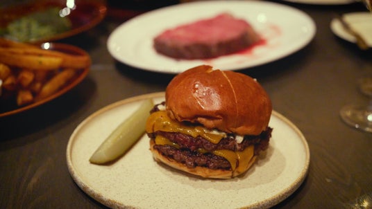 和牛チーズバーガー黒毛和牛のパテを220gも使用した、食べ応えのあるダブルチーズバーガーです。焼き立ての香ばしい香りと、とろけるチーズのハーモニーが絶妙です。ほんのり甘いブリオッシュバンズが、肉の旨みを優しく包み込みます。特製オーロラソースが、全体のバランスを引き締めます。