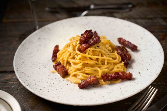 シェイクカルボナーラスパゲッティお客様の目の前で、手早くシェイクして仕上げるカルボナーラ。厳選されたこだわり卵と芳醇な熟成ベーコンの旨みを、特製の生パスタで最大限に引き出しました。目の前で仕上げるパフォーマンスは、まさにライブ。できたて熱々の贅沢なひとときを、ご堪能ください。