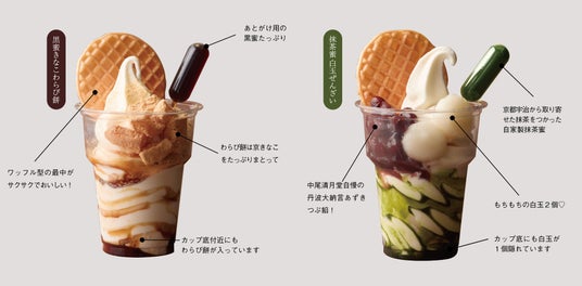 黒蜜あとがけスタイルはそのままに、絞りたてのソフトクリームを使用したパフェスタイルの「やわらか」。
