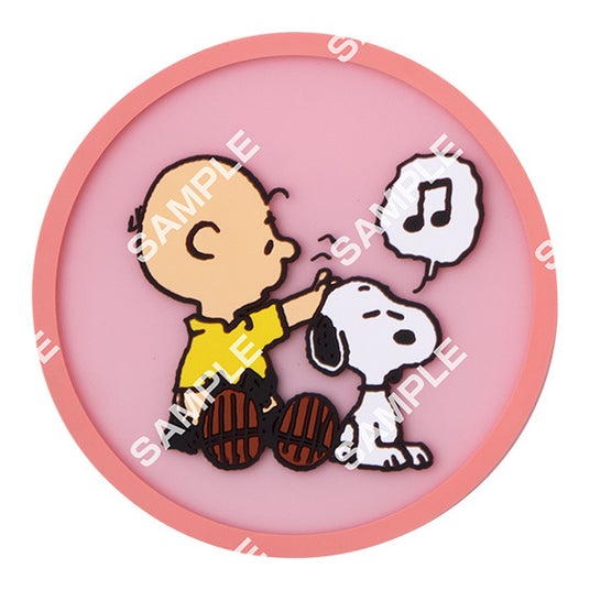 PEANUTSの仲間たちのかわいいシーンがデザインされたクリア素材のラバーコースター。10×10cmの使いやすい大きめサイズです。