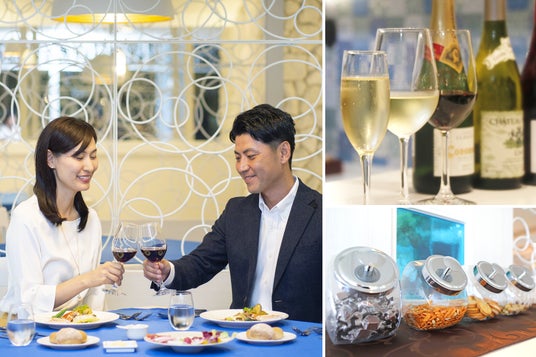 ご宿泊料金に、お食事はもちろんのこと「ビール・スパークリングワインなどのアルコールやご当地ドリンクの飲み放題」、「スナックやアイス」などのサービスが含まれ、追加料金なしでご滞在をお楽しみいただけるサービスです。