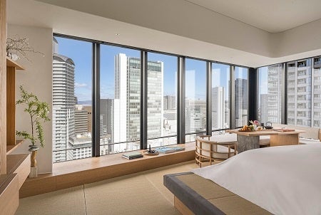 歴史ある街並みと近代的な建築が融合する大阪の中心地、堂島に開業した本ホテルは、日本国内で4軒目となる「フォーシーズンズホテル」で、全175室の客室(うちモダン旅館を表現した特別コンセプトフロア「GENSUI(玄水)」の21室を含む)、6軒のレストラン&バー、16メートルの屋内プール、温浴施設(お風呂、サウナ、貸切風呂)、24時間利用可能なフィットネスセンター、5室のトリートメントルームを備えたスパ、宴会場を完備しています。