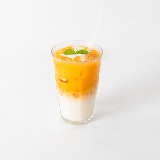甘さ控えめのヨーグルトラッシーに映える、にんじんカラーのゼリー。飲みごたえがあり、贅沢な気分になれるジュースです。