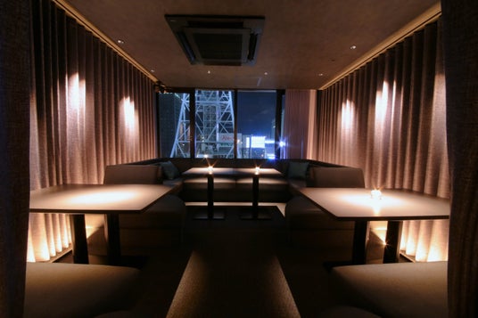 MIRAIタワーが一望できるアフターバーとして利用可能な洗練された屋内ラウンジ