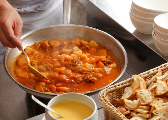 ライブキッチンでは、低温でじっくりと火入れをする事でしっとり柔らかく仕上げた「ローストビーフ」を、お客さまの目の前で切り分けて提供いたします。ディナータイムにはもう一つの名物料理である香り高い「ブイヤベース」もシェフがお取り分けいたしますので、ホテルならではの贅沢なサービスと美味しさを堪能いただけます。また、ランチ・ディナーとも「シーフードパエリア」はテーブルまでお届けいたします。「お野菜の自家製マリネ」、「チャバッタブレッドのサンドウィッチ」など、バラエティーに富んだラインナップがスイーツとともにブッフェコーナーに登場いたします。